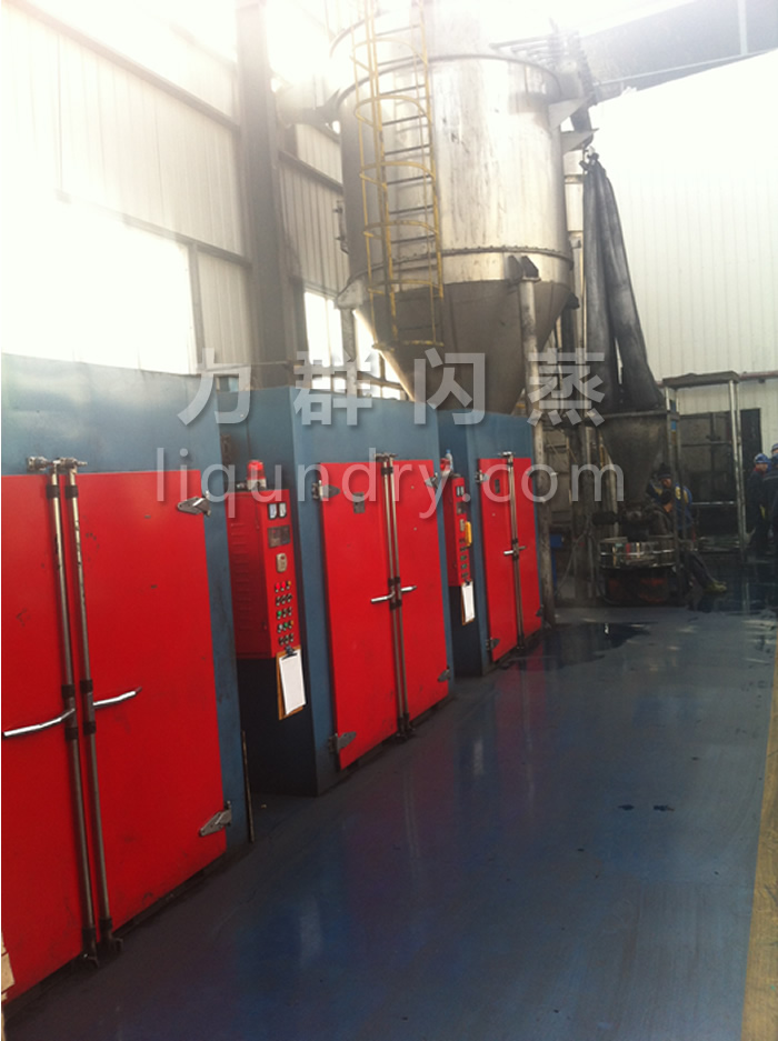 經換熱器加熱后的潔凈空氣被鼓入進風口,以適宜的速度旋入干燥室底部的環隙,然后按切線方向進入干燥室,并呈螺旋狀上升:同時,物料則由可無級調速的加料器定量加入塔內。在干燥塔內,物料與熱空氣進行充分、高效的質熱變換,被干燥的粉狀物料隨同熱風一起輸送至分離器,其中成品收集包裝,而尾氣則進一步經除塵裝置處理后排空。